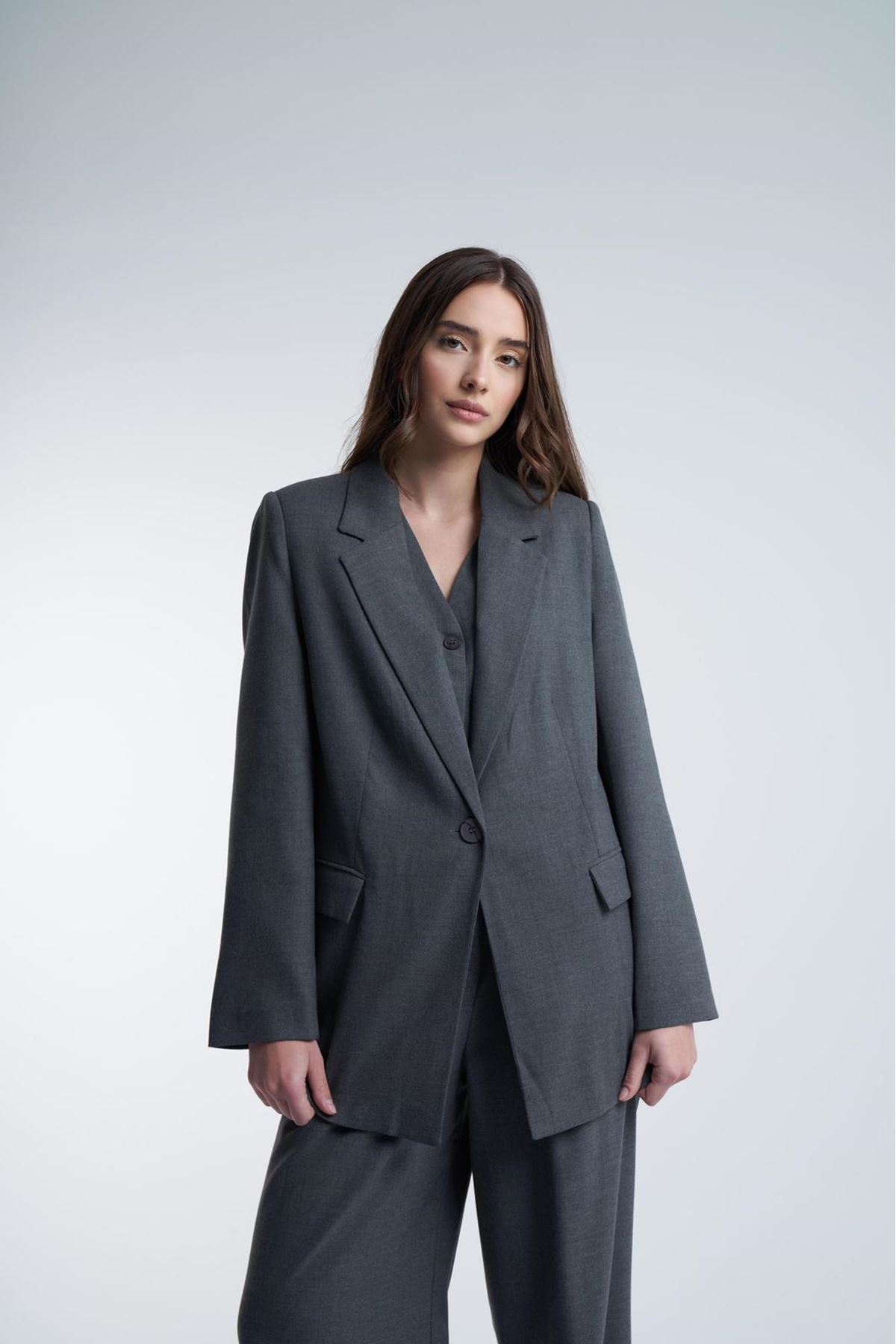 Kadın Oversize Blazer Ceket Gri - Antrasit